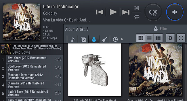 實現此特點的關鍵在於應用程式優異的搜尋與資料擷取效能,能充分運用標籤(Tag)資訊。由於圖片也會快取於應用程式中,專輯封面可即時捲動瀏覽,音樂資料庫也能依錄製年份、作曲者或曲風分類等方式自由排序。透過這些標籤資訊的運用,即使是名稱相同但版本不同的曲目,也能在畫面上輕鬆辨識。